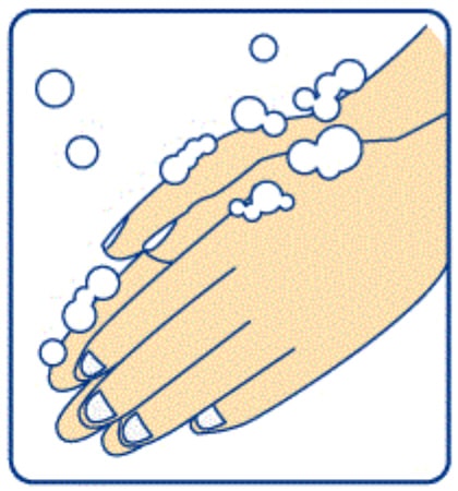 2.指、腕を洗う。特に、指の間、指先をよく洗う(30秒程度)。