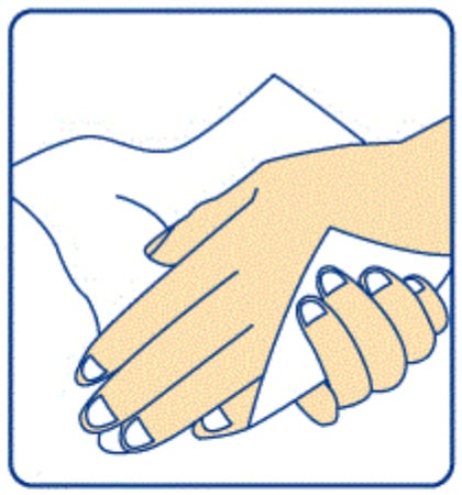 5.消毒用のアルコールをかけて手指によくすりこむ。