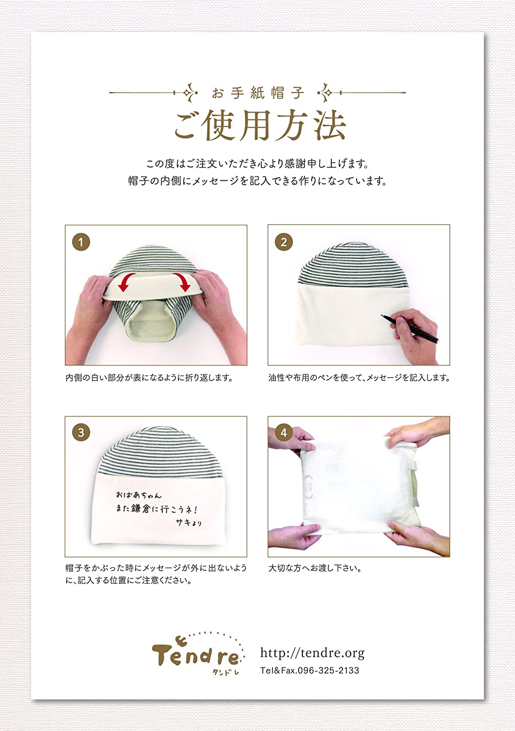 タンドレ 医療用帽子 オーガニックコットン お手紙帽子