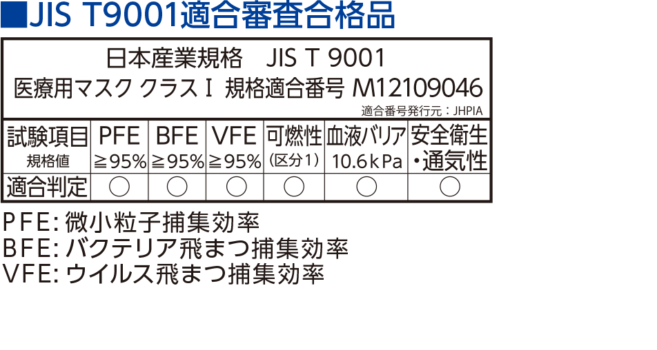 バリア性に優れたフィルタを使用しており、病棟や外来、検査室など、幅広く使用できます。BFE(バクテリアろ過効率)99%以上 ・PFE(微粒子ろ過効率)99%以上※実測値であり保証値ではありません。しっかりフィット