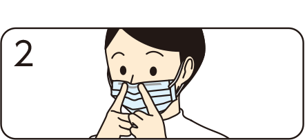 耳にゴム紐を掛け、ノーズフィッターを鼻の形に合わせます。
