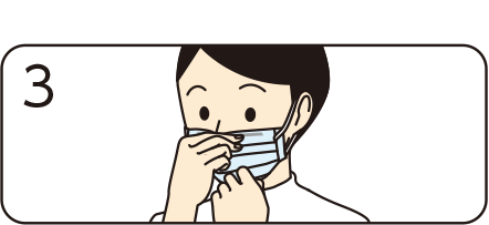 ノーズフィッターを上にして、ヒダが下向きになるように装着します。ゴム紐の付け位置は外面です(ピンク・ブルーは、色面が外側になります)。ロゴ表示は着用者の左下です。