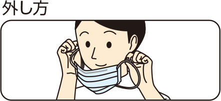 マスク外面を触らないようにゴム紐をもって取り外します。