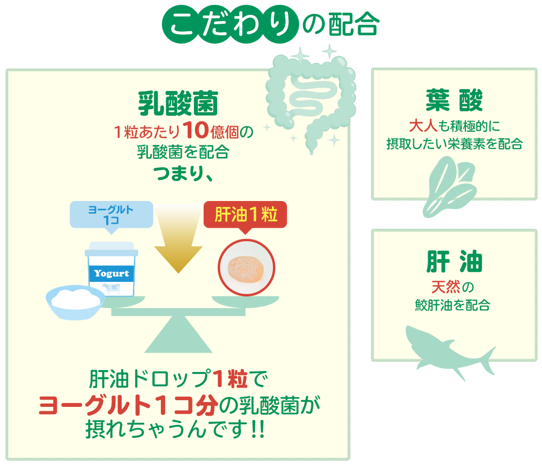 乳酸菌10億個・葉酸・鮫肝油配合
