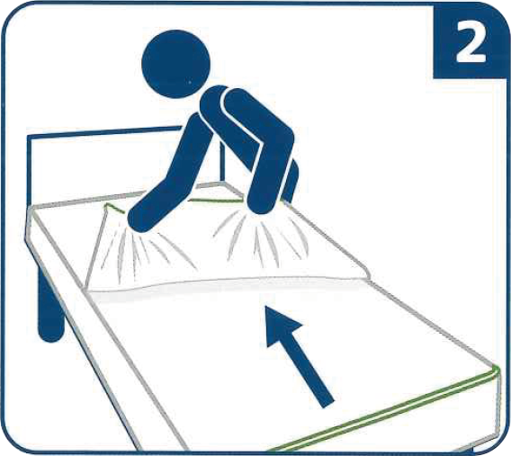 ①『はがせる使い捨てボックスシーツ』をベッドにかけます