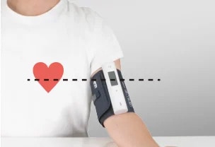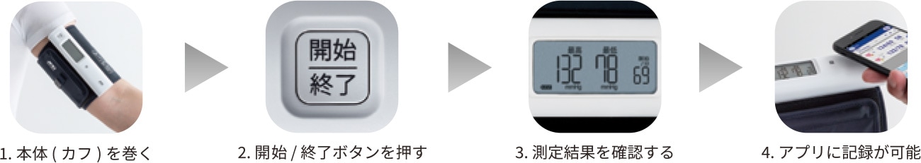 腕に通して、心臓の高さに合わせて、ボタンを押すだけ。