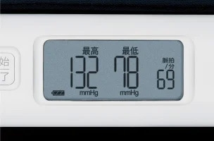- 圧力:0~299mmHg、脈拍:40~180拍/分