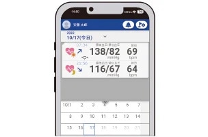 測定後はメモをとる必要もなく、スマートフォンのアプリに測定結果を転送し、記録、管理することができます。測定結果を記録することで、正確な血圧トレンドの把握をサポートしたり、医師との情報共有もスムーズに。