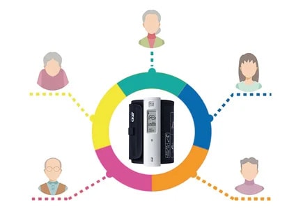 ペアリングが不要なので、1台の血圧計を家族で共有して使用することも可能です。何人でも共有できます。