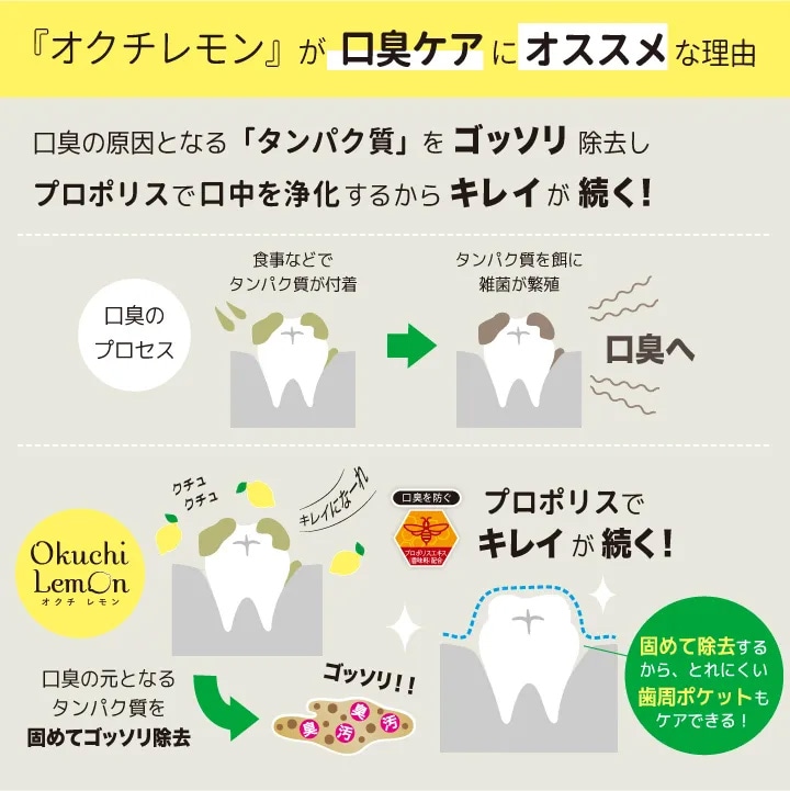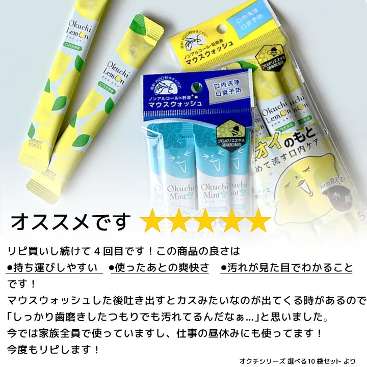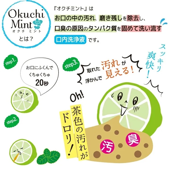 お口の中の汚れ、磨き残しを除去し、口臭の原因の一つであるタンパク質を固めて洗い流すノンアルコールタイプの低刺激タイプの口内洗浄液です。ブラッシングでは届かない口腔内を洗浄!外出先でも便利&衛生的なスティックの個包装です。※口内の状態によって、とれる汚れの量は異なります。