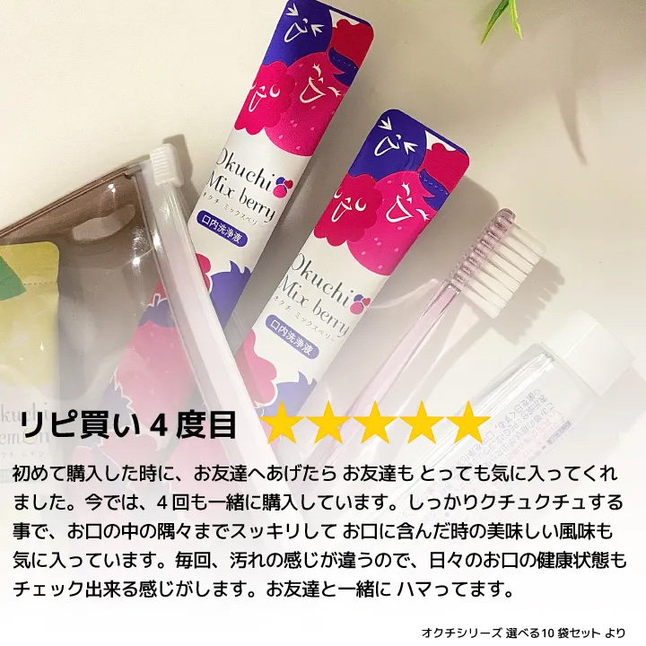 ・口内の異常、発疹等のアレルギー、ぜんそく等の症状があらわれたり、異常を感じた場合はご使用を中止し医師にご相談ください。
